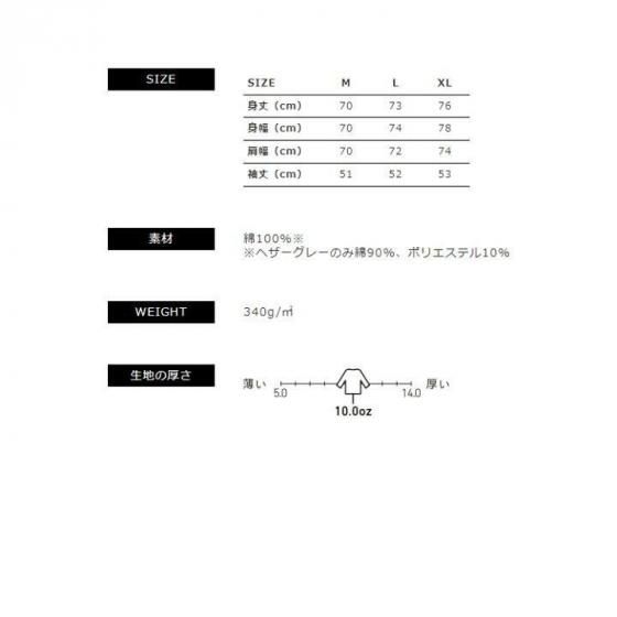 ※ヘザーグレーのみ綿90%、ポリエステル10%